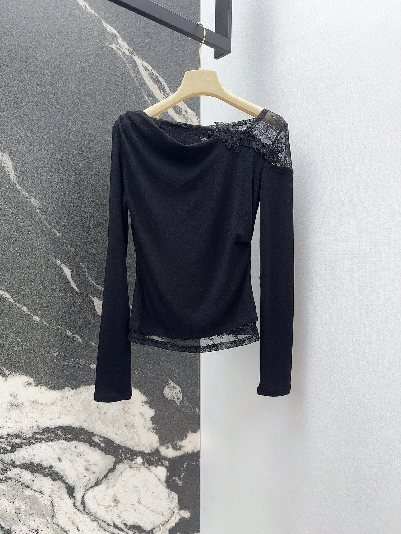 Autumn and Winter New Product Three Dimensional Flower Lace Round Neck Bottom Shirt Sweet and Pure Desire Lace Splicing Design Minimalist and Highlighted High Elasticity Fabric Soft and Comfortable Version, Large Upper Body, Slim and Age Reducing Exquisite Elegance, Gentle and Versatile Versatile Item, Atmospheric and Easy to Wear, Essential for Daily Dressing, Highly Recommended for Personal Use π± SML (size s: chest circumference 74, length 52)