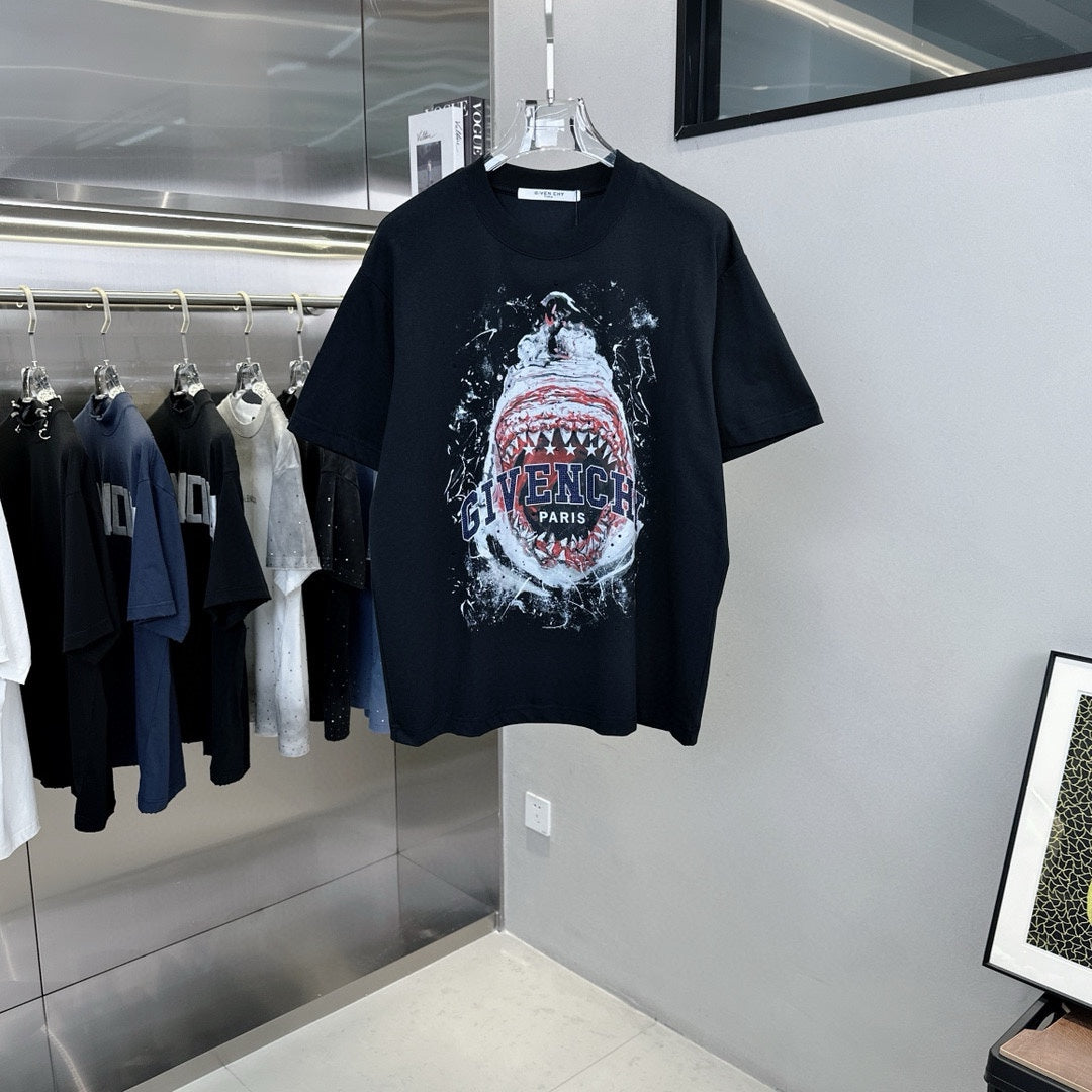 Shark Pattern Rhinestone Design T Shirt