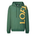 Medium weight pearl cotton fleece hooded sweatshirt with oversized prints on both the front and back.