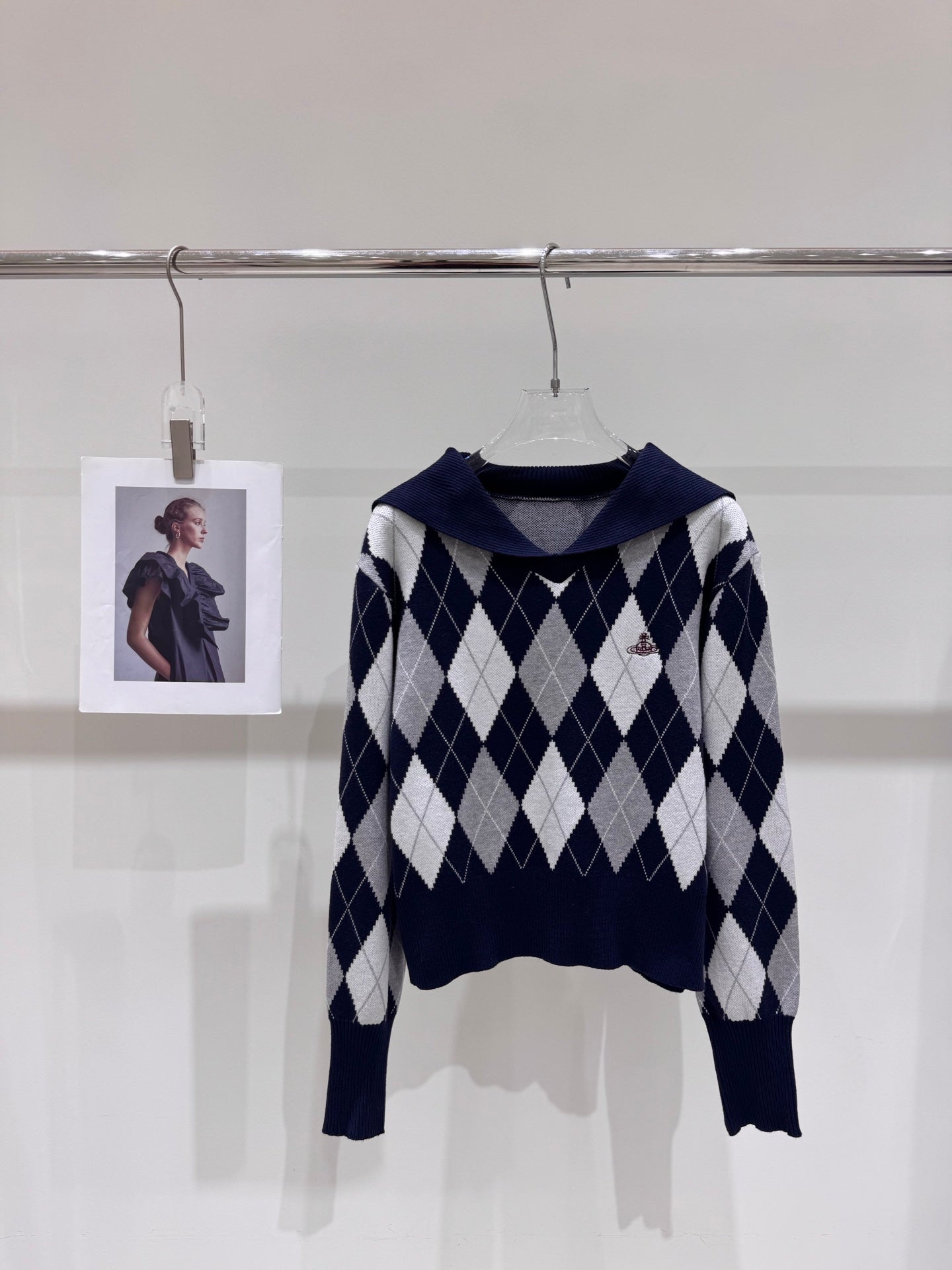 Fall π₯ New star embroidered V-neck contrasting diamond grid navy collar knitted long sleeved shirt, including wool π¦ Same style, classic diamond grid design~College style upper body age reducing leisure π